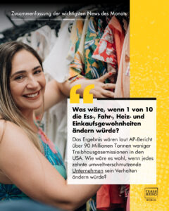 Ein neuer AP-Bericht konzentriert sich auf amerikanische Verbraucher, der zeigt, dass 90 Millionen Tonnen weniger Treibhausgasemissionen in den USA ausgestossen würden, wenn nur 10 % der Bevölkerung ihren Lebensstil ändern. Eine wirklich bemerkenswerte Reduzierung.