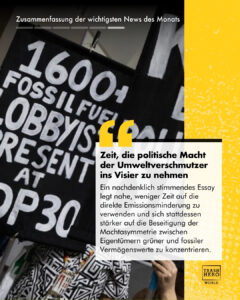 Ein Ansatz zum Nachdenken: um den Klimawandel und die Umweltverschmutzung wirksam zu bekämpfen, sollten wir weniger Zeit damit verbringen, uns um die Emissionen zu sorgen, sondern viel mehr darauf zu konzentrieren, das Machtgefälle zwischen den Eigentümern grüner und fossiler Vermögenswerte zu beseitigen. Hier geht es zur vollständigen Analyse.