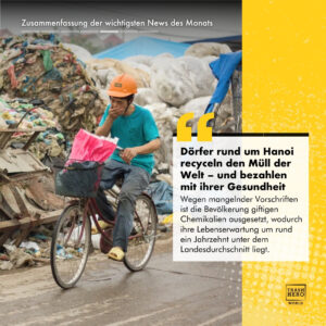 Übermässige Einfuhr und Lagerung von Abfällen sowie nur geringe Regulierung haben die Bevölkerung der Vororte von Hanoi gefährlichen Giftstoffen ausgesetzt, was laut einer Untersuchung von AFP zu einer um ein ganzes Jahrzehnt geringeren Lebenserwartung im Vergleich zum nationalen Durchschnitt in Vietnam führt.